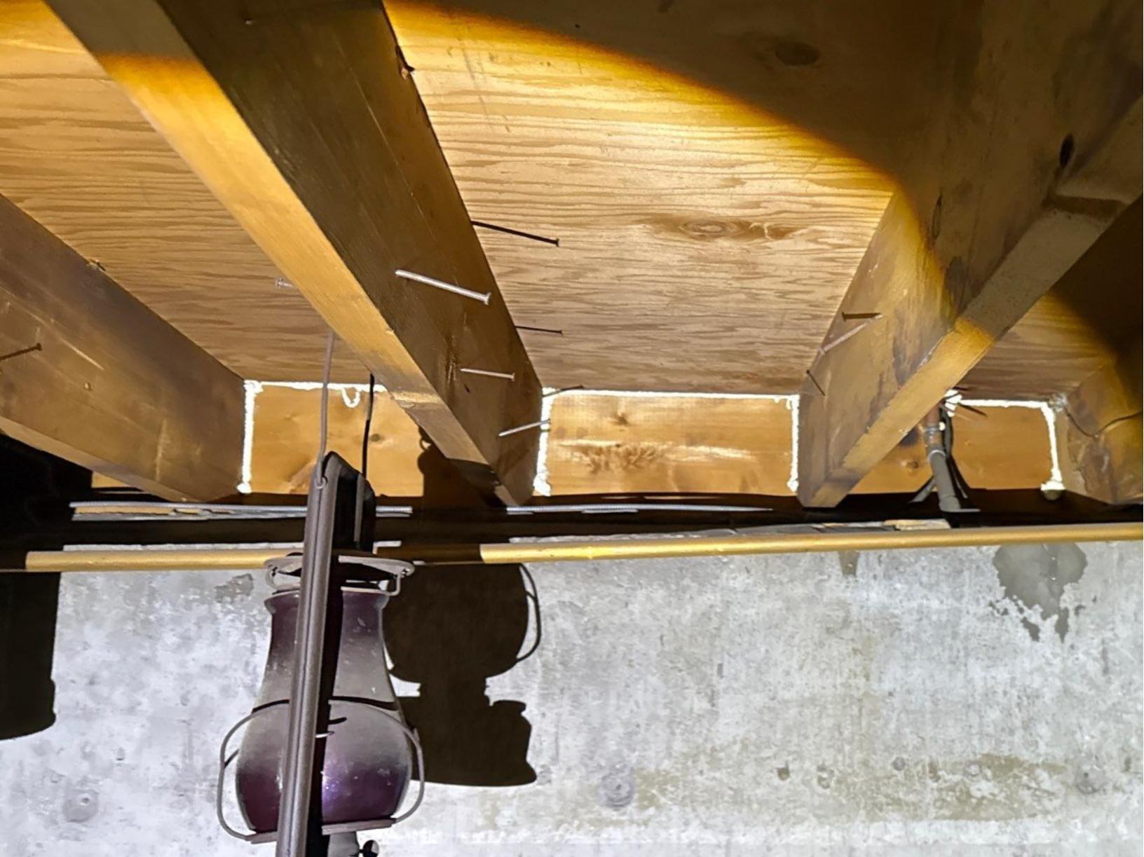 The first thing we need to do is remove all of that old, nasty insulation from the floors of this home. We remove and properly dispose of the material, vacuuming up anything that fell. Then we can move on to our next step. We install SilverGlo foam insulation board across the floor joists and hold them in place with with 3” washers and 5” screws to ensure stability. We seal all of the SilverGlo seams with one- part foam.