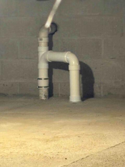 After: A two-pipe system was carefully installed, including strategic work in the crawl space. Pipes exit discreetly near the stairwell, ensuring both functionality and curb appeal. The setup is now sealed and efficient.