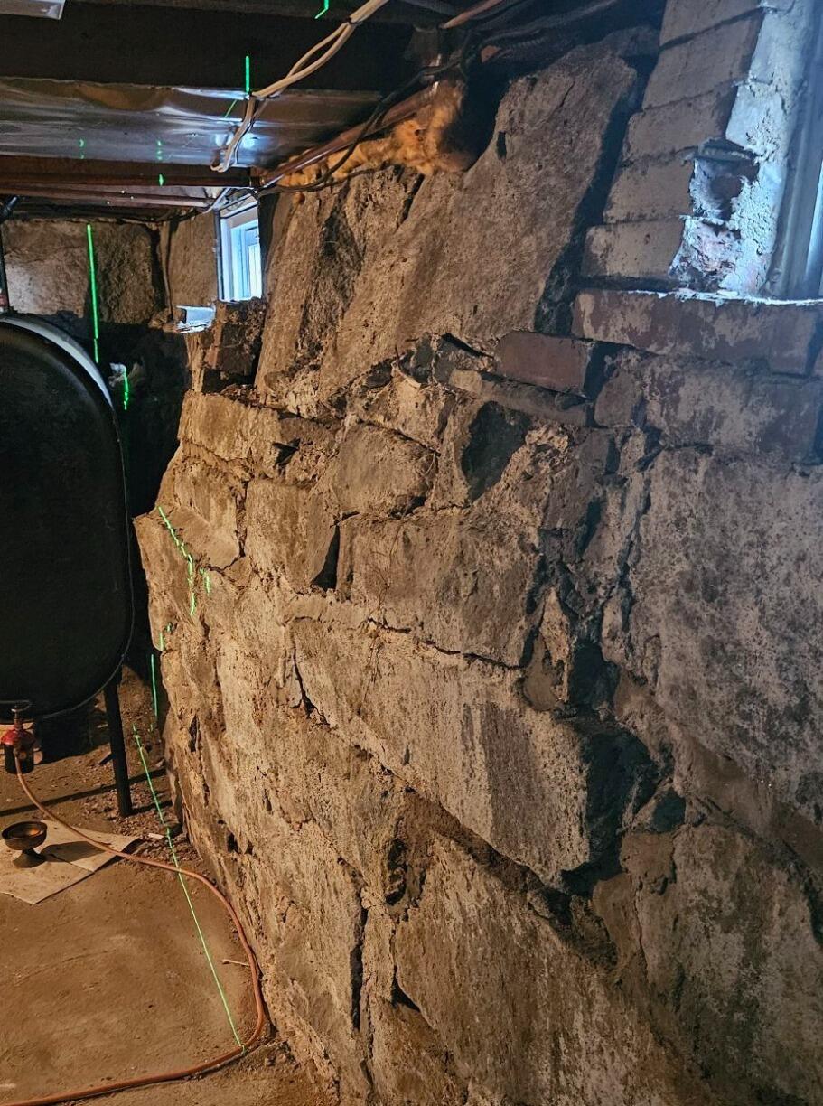 In the before photo, you'll notice the significant inward bowing of this home's fieldstone foundation in Concord, NH. This structural issue posed a serious risk to the integrity of the entire home. At Erickson Foundation Solutions, we addressed this problem with our expertly crafted StableLock system. In the after image, you can see the subsequent stabilization of the wall, which secures the home’s foundation and ensures long-term safety. Our permanent solutions reestablish your confidence in the structural stability of your home, showcasing reliability and outstanding craftsmanship.
