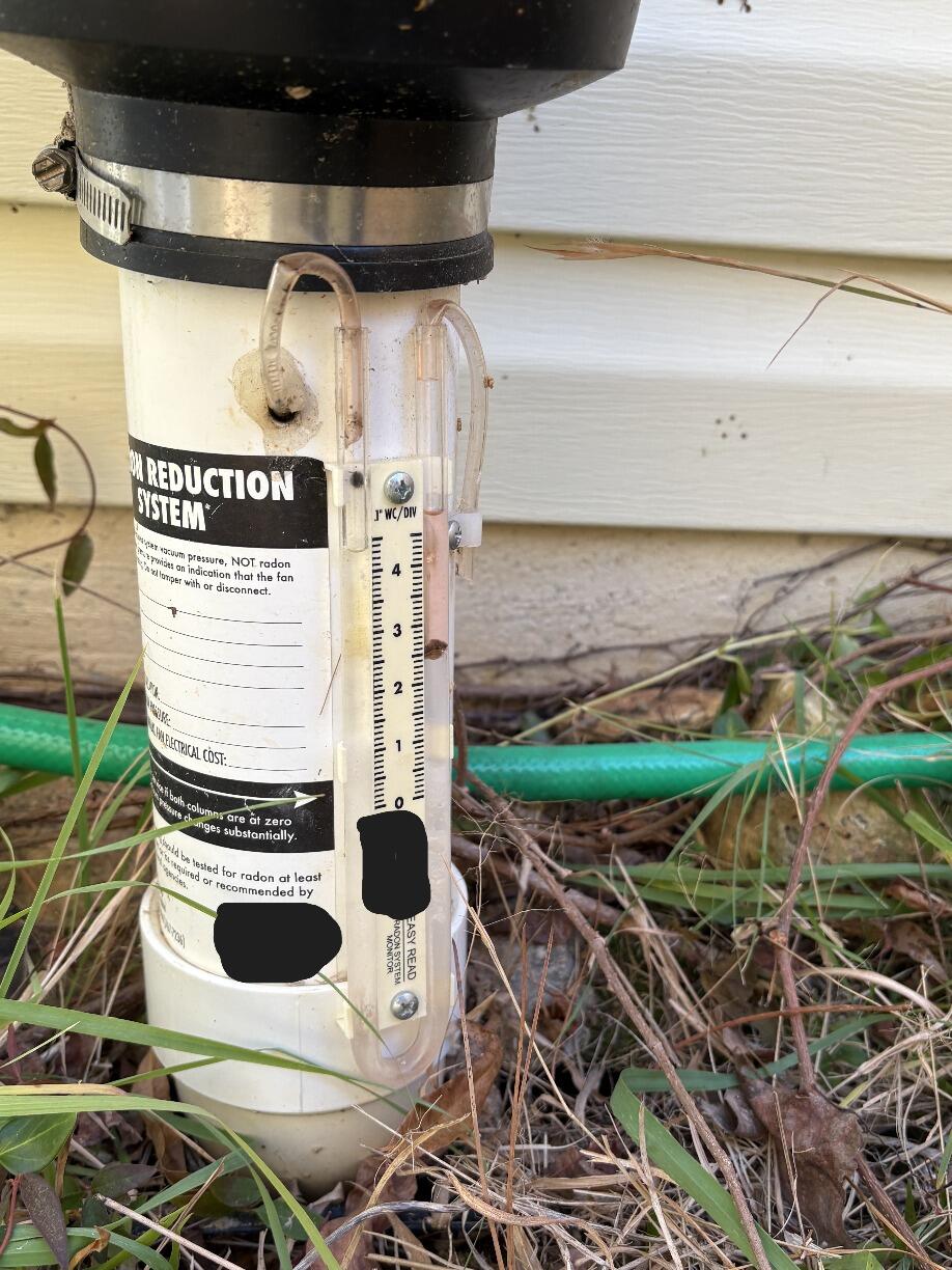 Andrew reached out to us when his 2 year old radon mitigation system needed repair. During our inspection, we found the system was using a standard manometer outdoors, which is not designed to withstand weather exposure. This is a common issue with exterior radon systems.