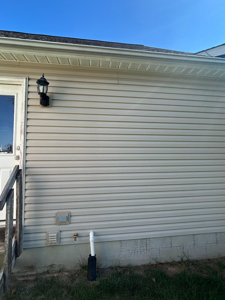 In these photos you will see a before and after of what the exterior portion of a system that was done on a two-story home, where you can clearly see the fan!