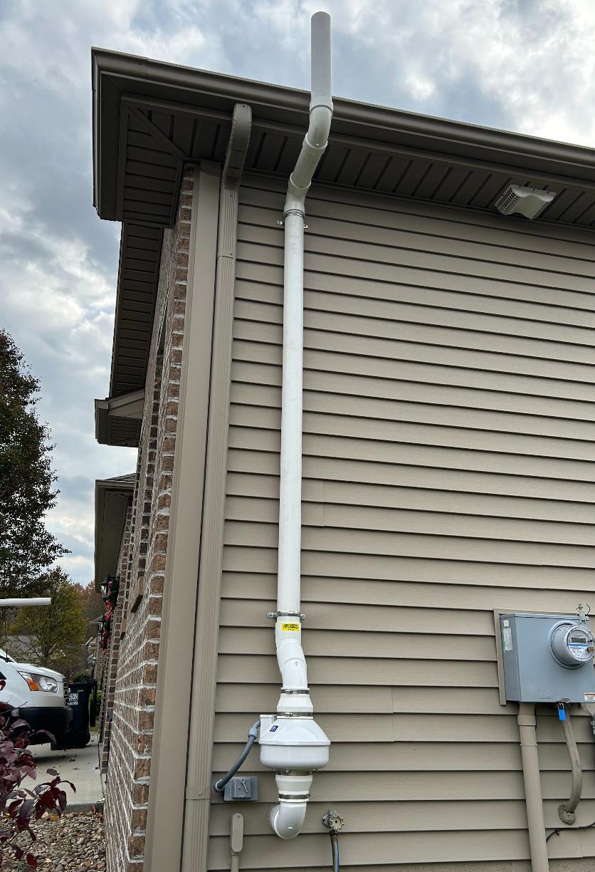 Here is the before and after of a job we did in Columbiana Station, this is specifically the interior portion of a Radon Mitigation System.