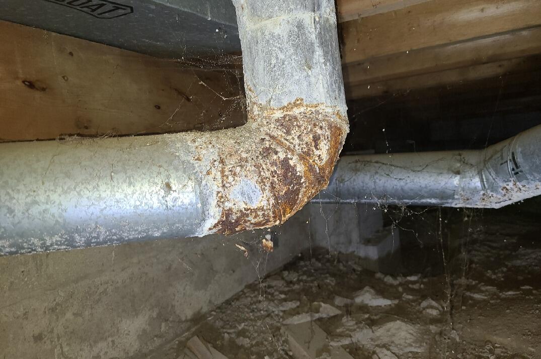 Do you see signs of excess humidity in your crawl space? Rusted ductwork or metal is a clear sign!