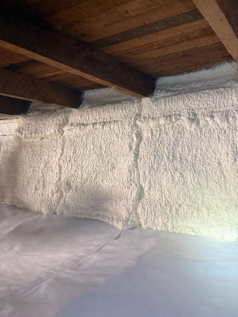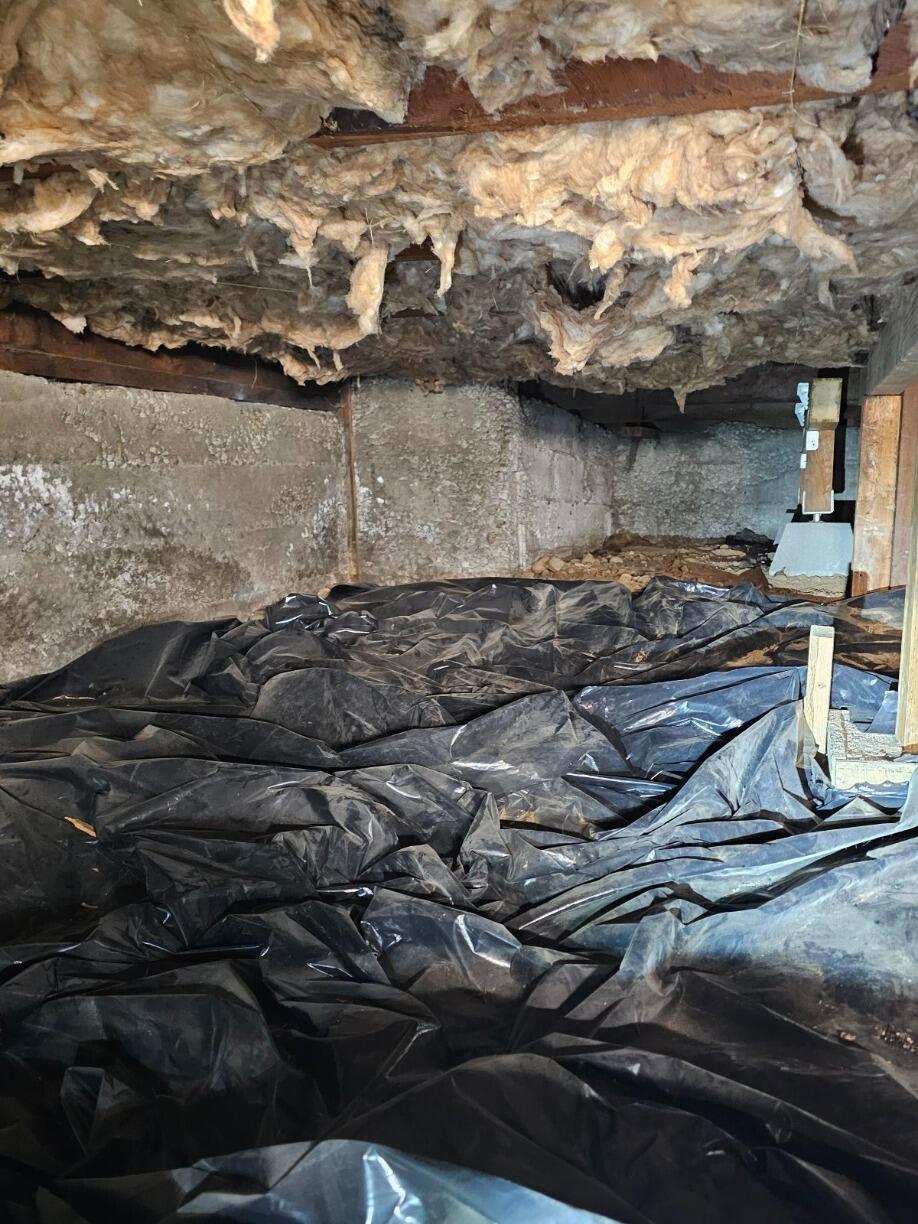 These homeowners had a basement with an elevated crawl space and were wanting to create some more storage space, as well as make it more appealing since it was debris filled and had fiberglass all over. They reached out to Johns to get a free inspection and find an option that works best for them. Once our system design specialist was through with the inspection, he went over the design plan with the homeowners and they moved forward with the project. We began by removing all of the debris along with the vapor barrier and fiberglass insulation. Since this was a smaller crawl space that did not have much water intrusion, we installed our SmartDrain system. This system alerts the homeowner of a possible plumbing leak with an audible alarm and will drain the water away into a dry well underneath the CleanSpace until the homeowner can address the problem. We then installed our TerraBlock system on to the dirt floor of the crawl space to create an insulated barrier between the home and the earth. Next the crew installed our CleanSpace system all along the foundation walls, up to the rim joists and sealed it at the footing of the wooden posts with our waterproof tape. Then, to control the environment, we installed our SaniDry Sedona dehumidifier, which will effectively eliminate damp, musty odors while drying and filtering the air. This will also keep the home at a healthy relative humidity. Lastly to finish this project, we installed our foam insulation by spraying it along the foundation walls, up to the rim joists, ensuring every crack and void was filled. Spray Foam insulation guarantees an airtight seal, preventing air leaks and moisture from entering. With this finished crawl space, these owners can confidently use this area as extra storage without the worry of it being damaged.