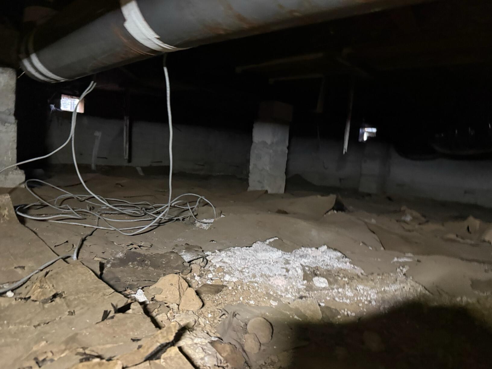 This homes crawlspace was difficult to maneuver. its old fiberglass insulation was hanging low and in tatters. From our inspection we saw this was due to water weight in the insulation as well as critters pulling it apart to burrow into. The homeowners opted to do our crawlspace encapsulation to ensure this space remains dry and healthy.