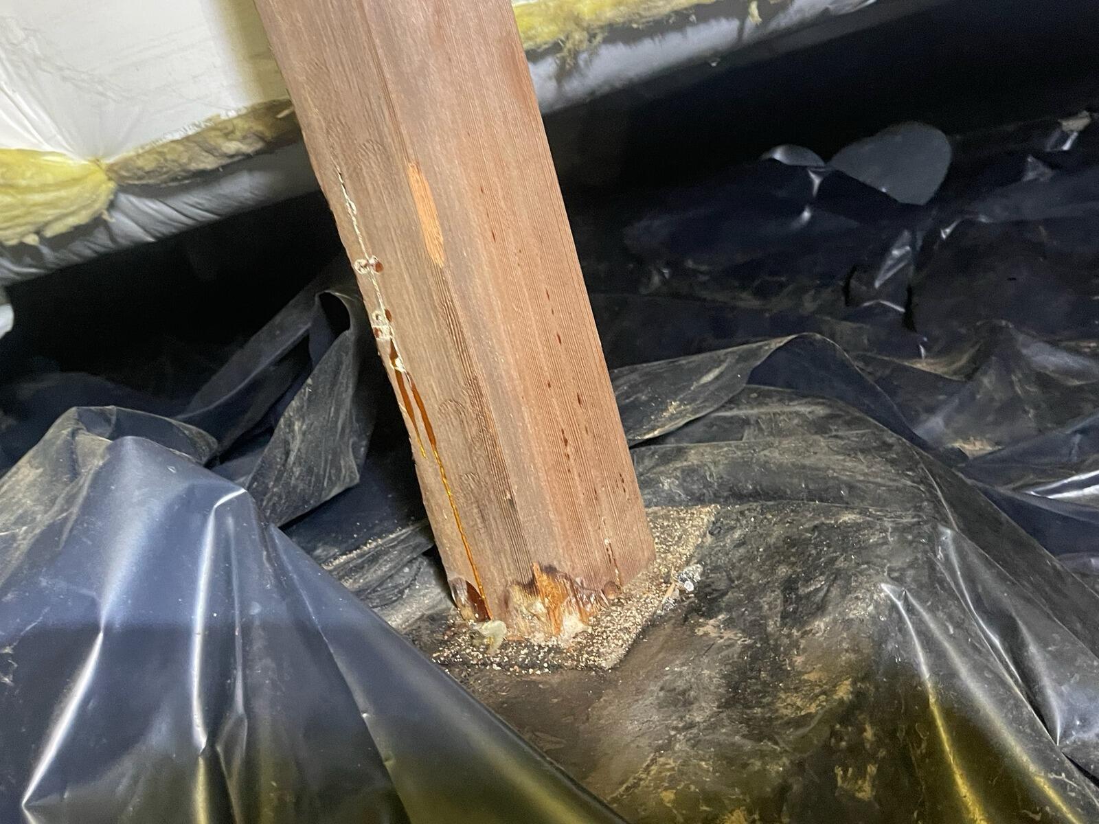 This homeowners floors were beginning to sag and she wanted to find the cause of this issue, so she called us up. We went out and performed a free thorough inspection of the crawl space and found that most of the posts had moisture damage and were starting to get wood rot. This made them unstable and was causing the floors in the home to begin to sag. This homeowner was ready to find the best solution so she scheduled her project. First, we began by removing all of the debris, and some fiberglass insulation. We then replaced all of the wooden posts that had water damage with our SmartJack system. These are our adjustable supplemental steel piers that help add support and lift the floor back up securely. Now that everything is stable and secure, we then dig a trench around the interior perimeter of the crawl space, in which we install a three inch perforated pipe into a silt sock to secure a safe passage for water to drain to the lowest point. At this low point we install our SuperSump Plus sump pump that will collect this water and pump it outside of the house away from the foundation through a discharge line. To finish this project we Install are 6 black vapor barrier to prevent moisture from making its way through the floor of the crawl space. The floors in this home are no longer sagging and is secured with our SmartJack system.