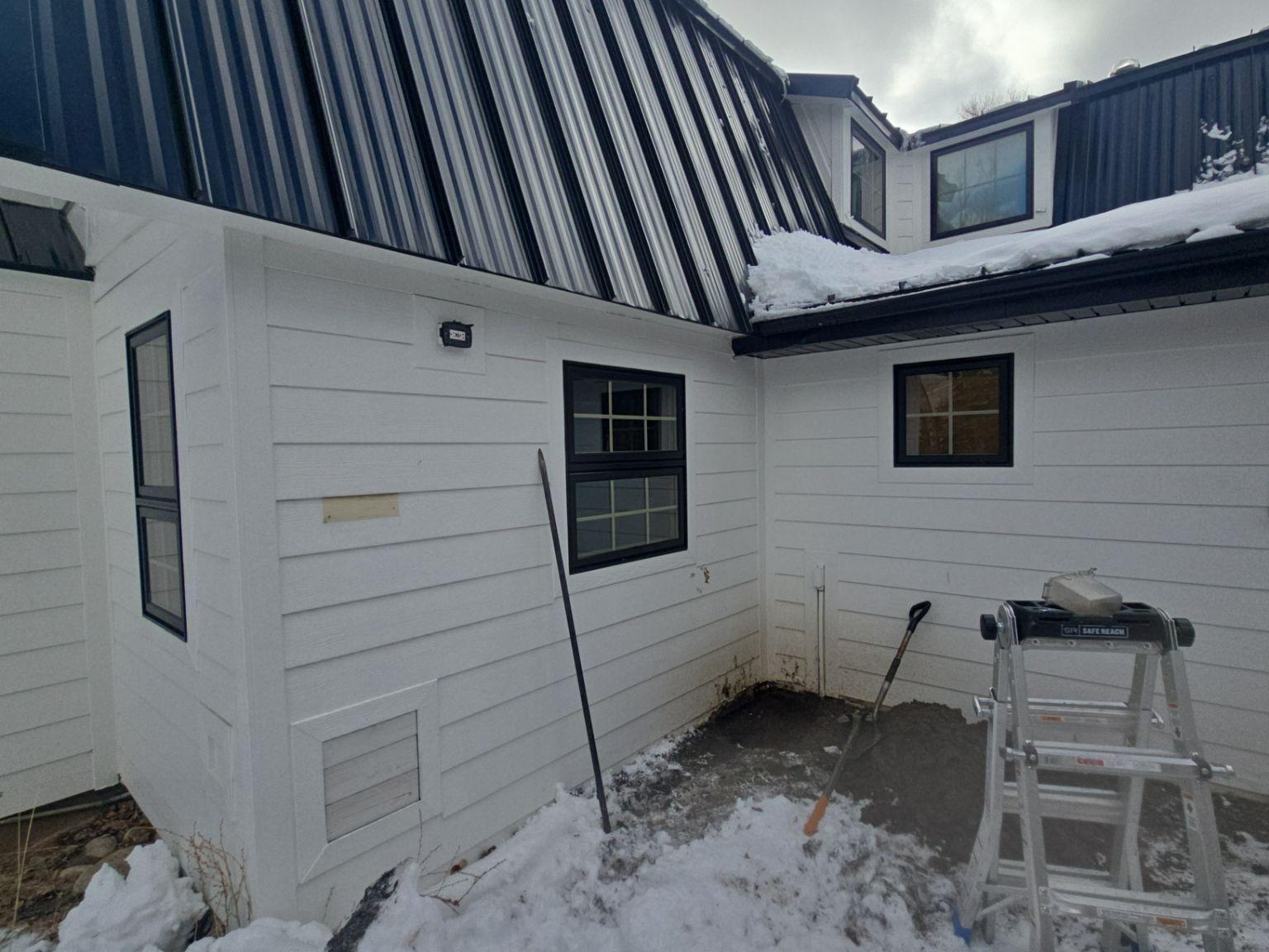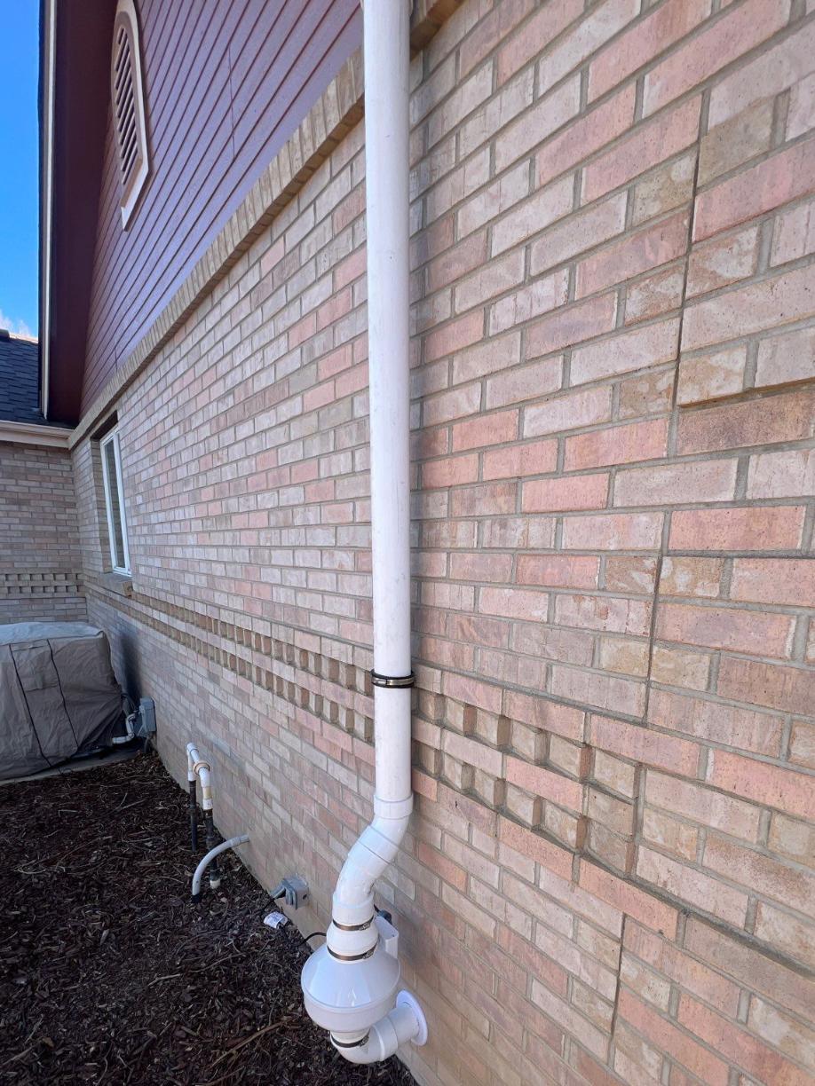 North Point Radon installed an exterior radon mitigation system from the basement out to the exterior of the home and vented above the roof.