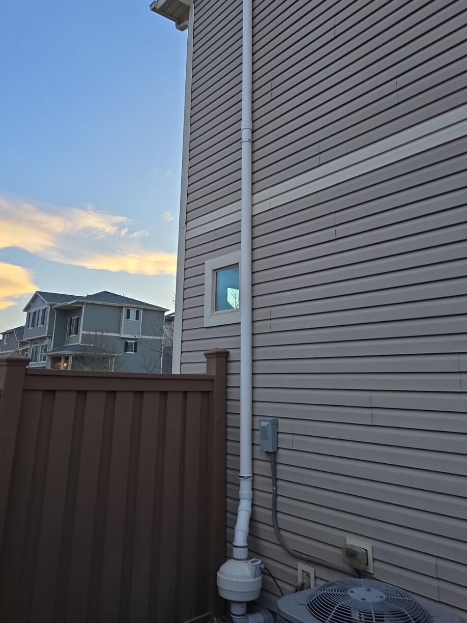 North Point Radon installed an exterior radon mitigation system from the basement out to the exterior of the home and vented above the roof.